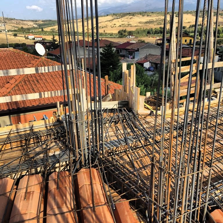 Ecco un fabbricato al terzo solaio e travi, pronti, prima del getto di cemento, a copertura del secondo piano fuori-terra del fabbricato che guarda i monti Nebrodi.