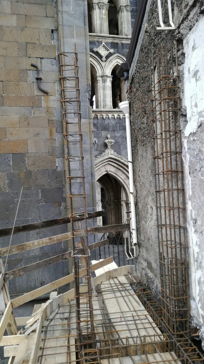 Restauro conservativo in corso foto fresca 😉 di giornata, casa in centro storico, con architettura medievale, sullo sfondo gotico della chiesa su cui affaccia il fabbricato.