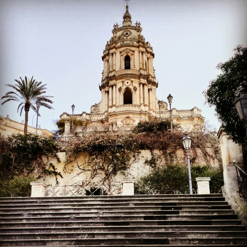Chiesa Madre, Duomo di San Giorgio e bellissima scalinata, città di Modica antica segnalata sulle strade come “oldtown”.