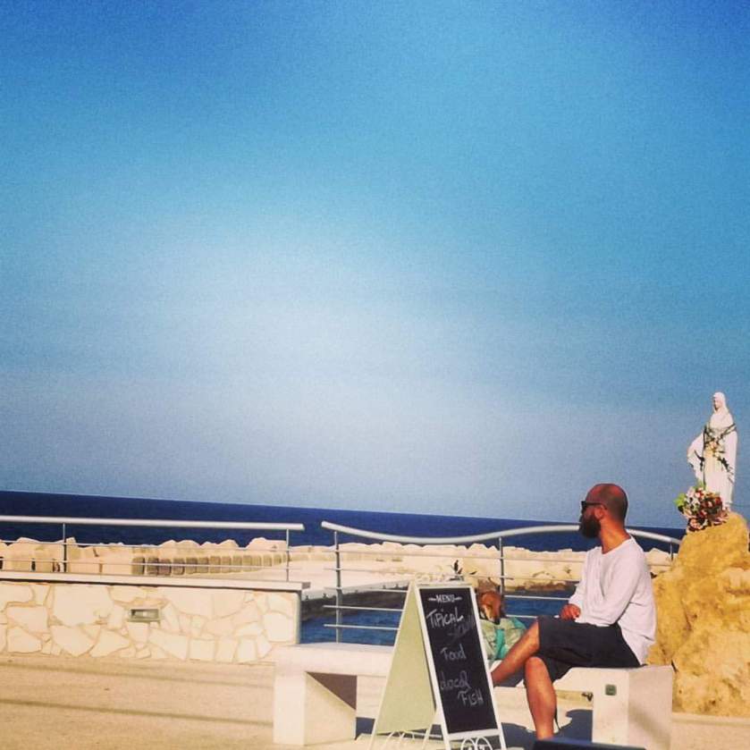 💯 Architettura degli elementi in una istantanea? Un Cane, un uomo, la Madonna… Il cielo, il mare, la terra, le persone, il cane, la religione, il panorama, il relax, la VITA!