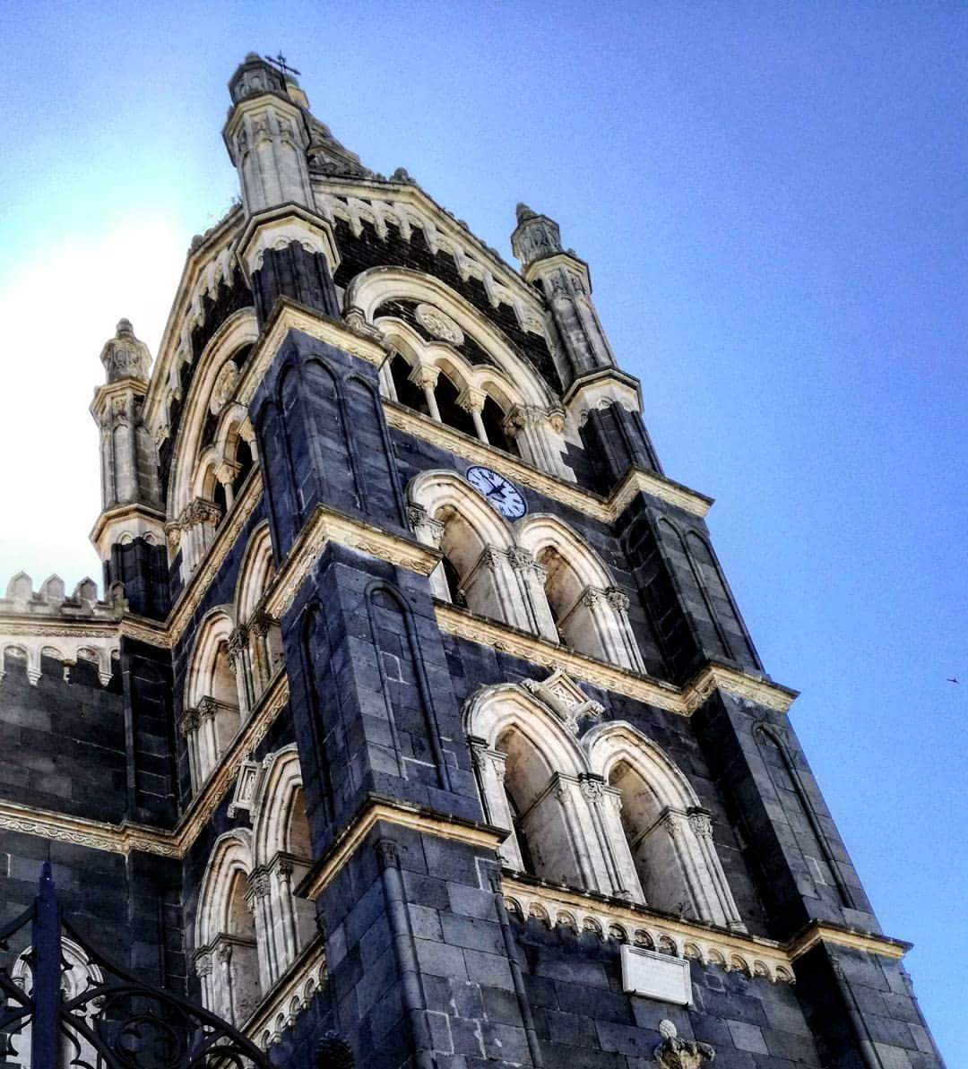 Dal cantiere ecco il piacere per gli occhi, il Campanile della Basilica di Santa Maria, architettura in blocchi neri di pietra lavica, bicromo o se preferite black-and-white architecture, con archetti, sculture e rosoni di pietra calcarea.