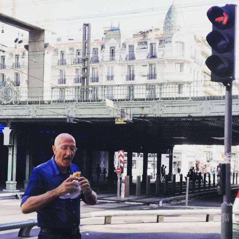France snack and architecture. Eating food in Nizza, Nice