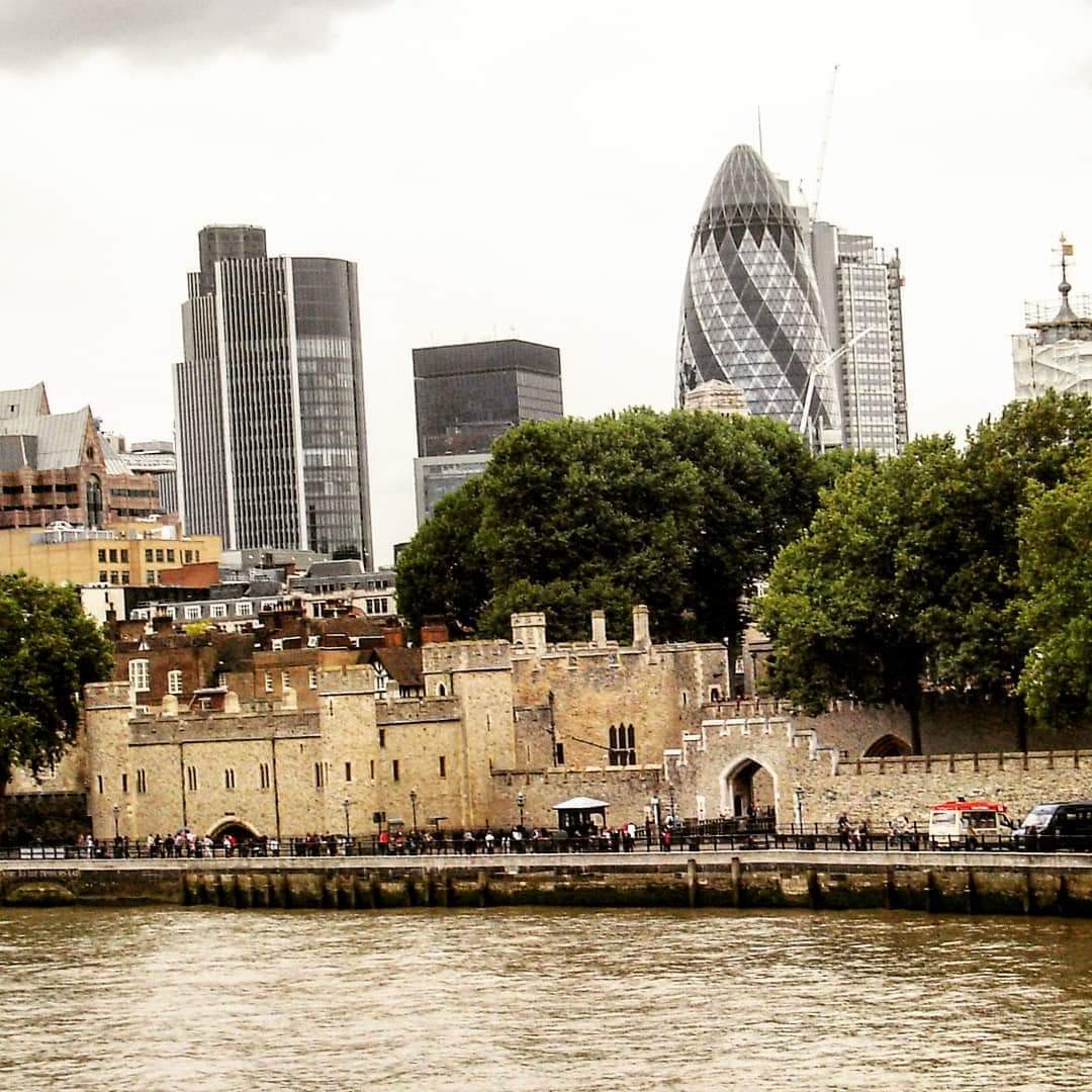 Photography = Foster the Gherkin skyscraper, il “cetriolo” in italiano, l’antico e il moderno, costruzioni per tutti i tempi e per ogni tempo… Saint Mary Axe + Tower of London + Thames river.