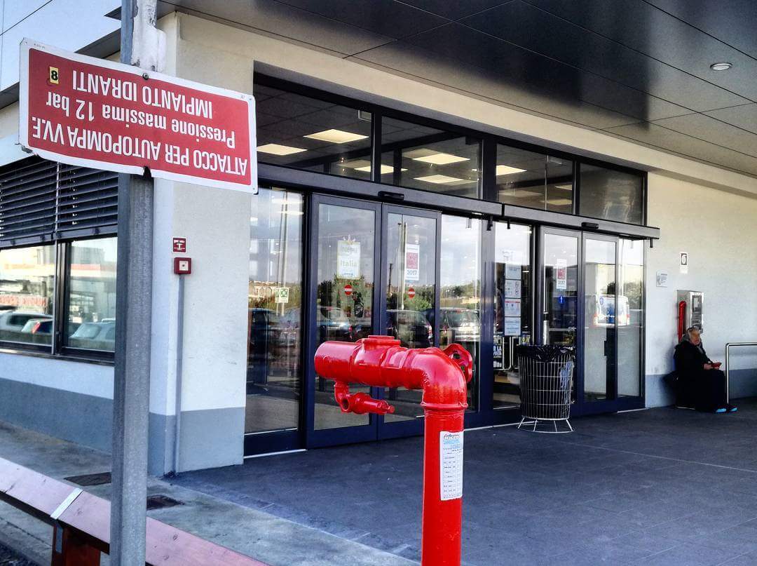 Al supermercato, segnaletica di sicurezza per interventi antincendio, attacco per autopompa per i vigili del fuoco, al Lidl fire fighter signals. Per fortuna che loro sono già ben pronti 👍 e ottimamente addestrati. Anzi li ringraziamo sempre