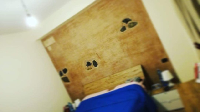 🏠 Home, bedroom ancient wall in wich we letf some old original lava stones, it makes interior design, here you are today a modern earthquake proof house.