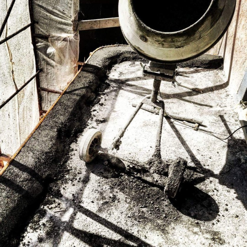 Building and restoration of an ancient house, in the small balcony you see in the above picture, a mobile concret mixer in construction site.