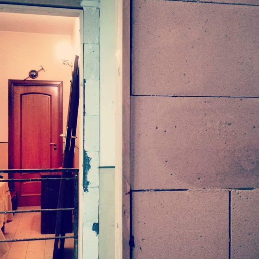 Buildings apartment restoration by using Autoclaved Aerated Concrete, AAC for new walls and doors.