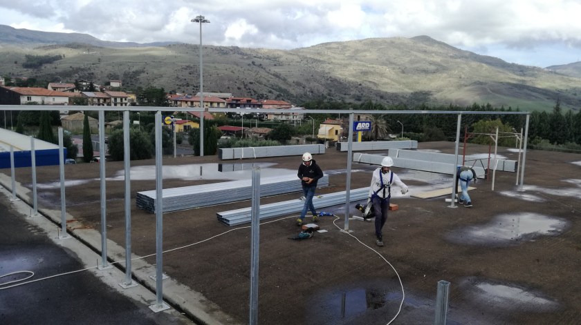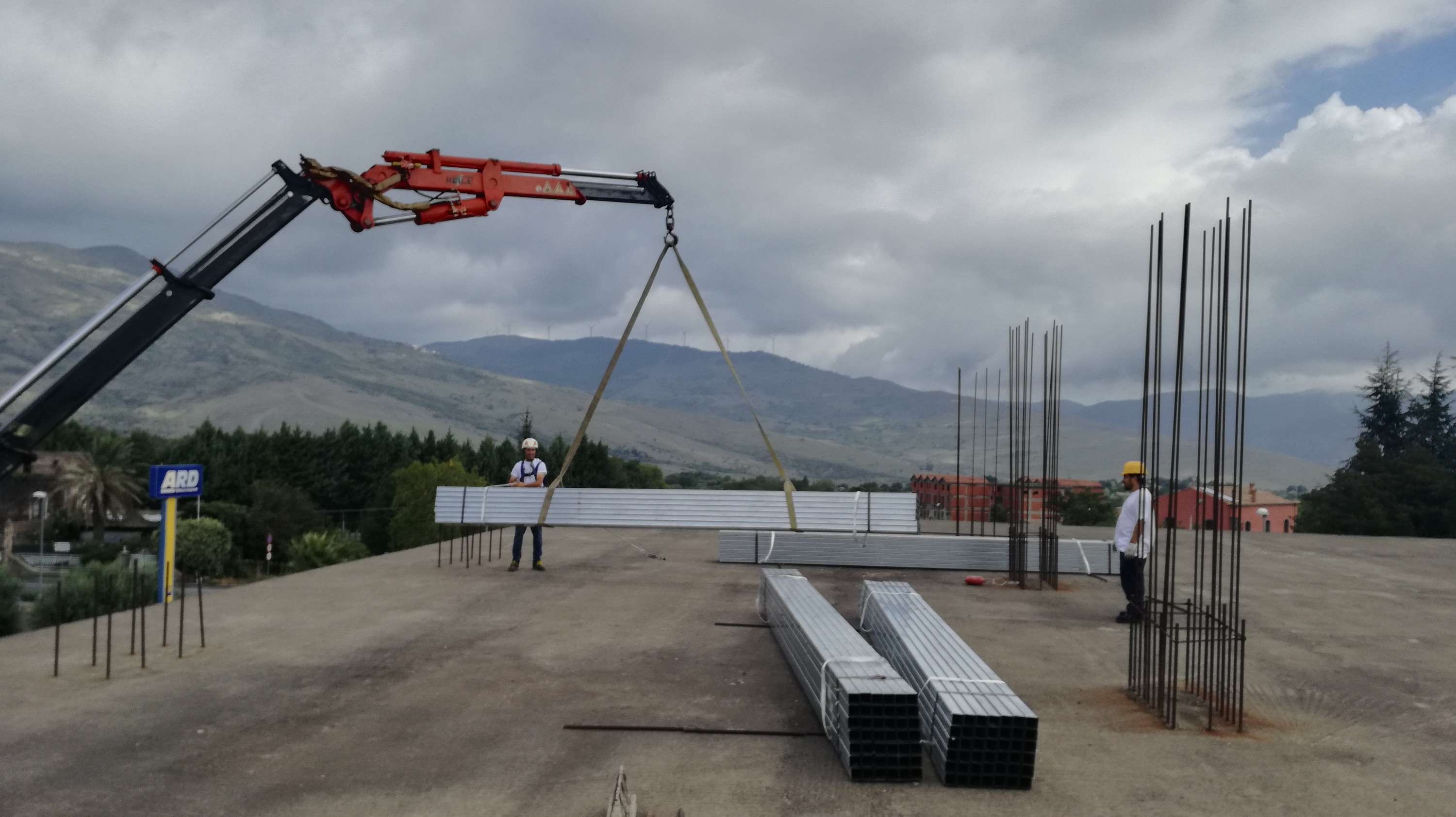 Arrivati i 2 mila metri quadrati di pannelli per la copertura del tetto, direttamente dall’industria che li produce.